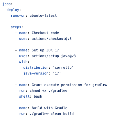 - distribution : setup-java의 설정으로 JDK 배포 버전을 지정합니다.