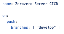 - 위의 사진에서는 develop 브랜치로 Push할 시 workflow가 실행됩니다.