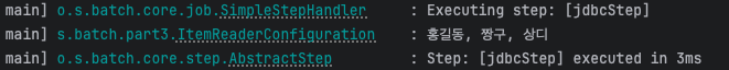 .writer(itemWriter()) // writer는 reader를 통해 읽어온 이름을 출력하게 했습니다.