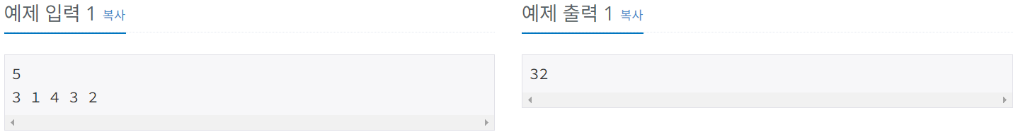 첫째 줄에 사람의 수 N(1 ≤ N ≤ 1,000)이 주어진다. 둘째 줄에는 각 사람이 돈을 인출하는데 걸리는 시간 Pi가 주어진다. (1 ≤ Pi ≤ 1,000)