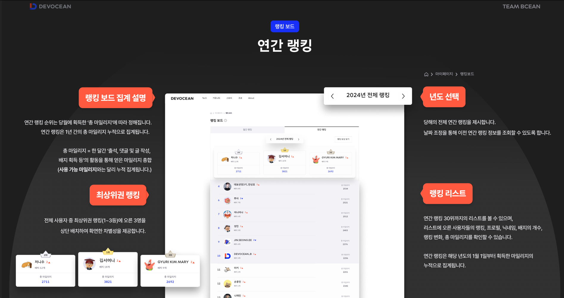 "랭킹은 해당 월의 마일리지가 적립된 사용자를 기준으로 조회됩니다!"