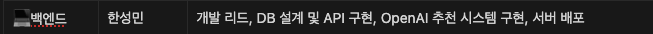 저는 백엔드를 담당했고, 개발팀 리드를 맡았습니다.
