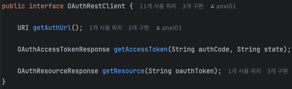 OAuthRestClient를 생성자 주입 및 Factory 패턴을 활용하여 런타임 시점에 구현체를 동적으로 선택할 수 있게 구현하였습니다.
