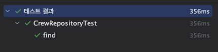 따라서 crew와 findCrew 객체는 당연히 다르기 때문에 테스트가 실패한다.