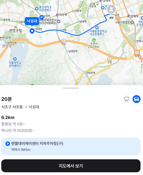 이때 출발지 ~ 중간 지점까지의 경로를 대중교통과 자가용, 두 가지를 기준으로 보인다.
