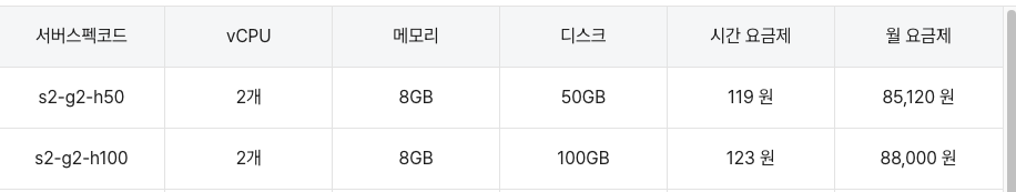 위의 NCP 서버 스펙을 보면 서버의 성능이 모이삼 웹 서비스 대비 고성능이다.