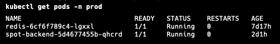 배포 이후, 위 명령어를 통해 스프링 애플리케이션과 레디스 파드가 띄어졌음을 확인할 수 있다.