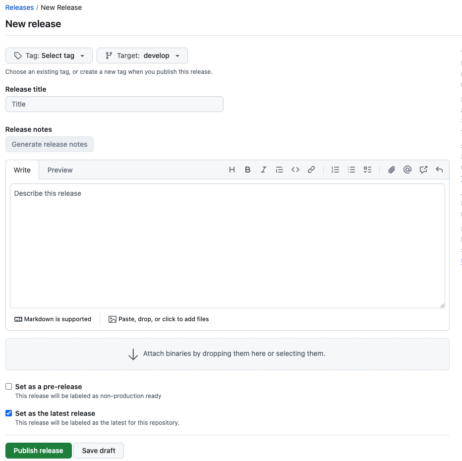 - Release Notes : Generate release notes 버튼 클릭