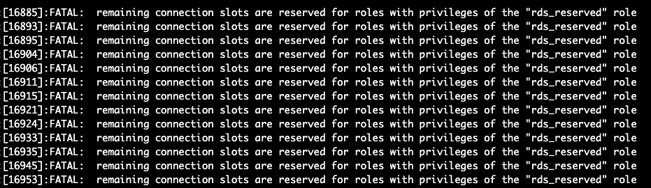FATAL: remaining connection slots are reserved for roles with privileges of the "rds_reserved" role