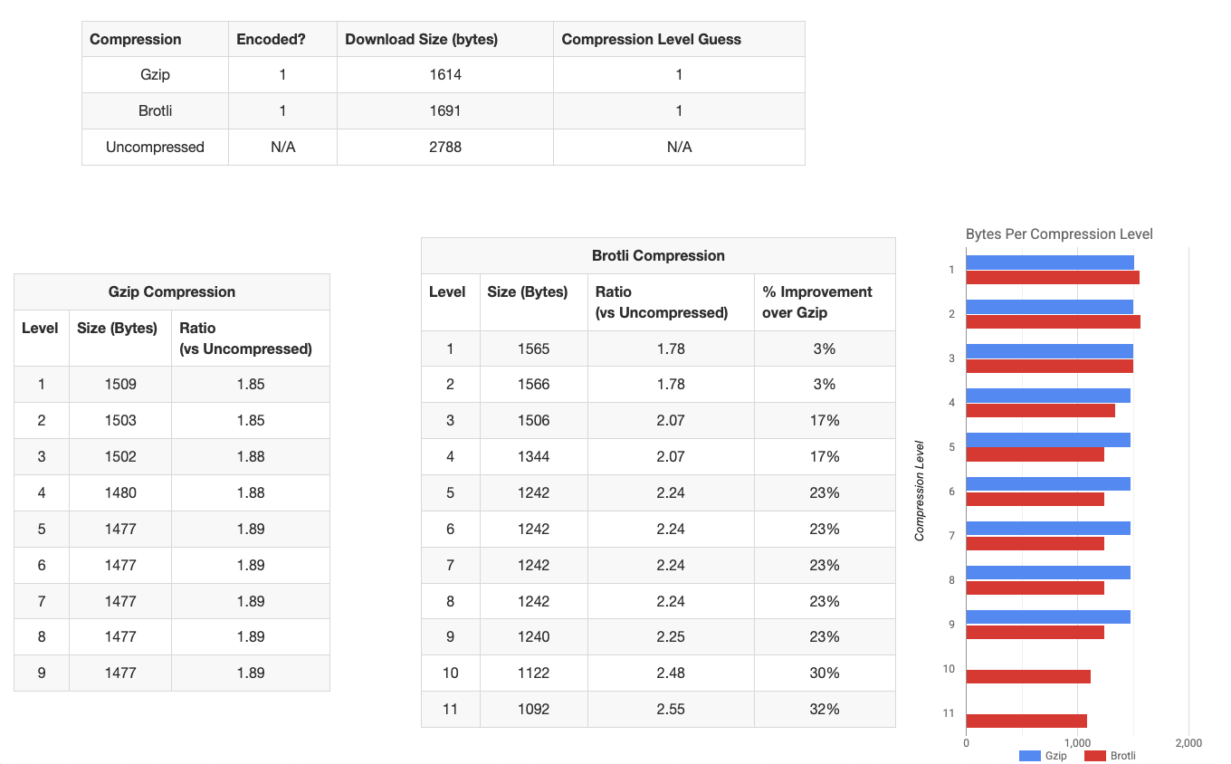 위 사진은 gzip뿐만 아닌 여러 압축 포맷에서의 브라우저 수용 가능성을 보여준다.