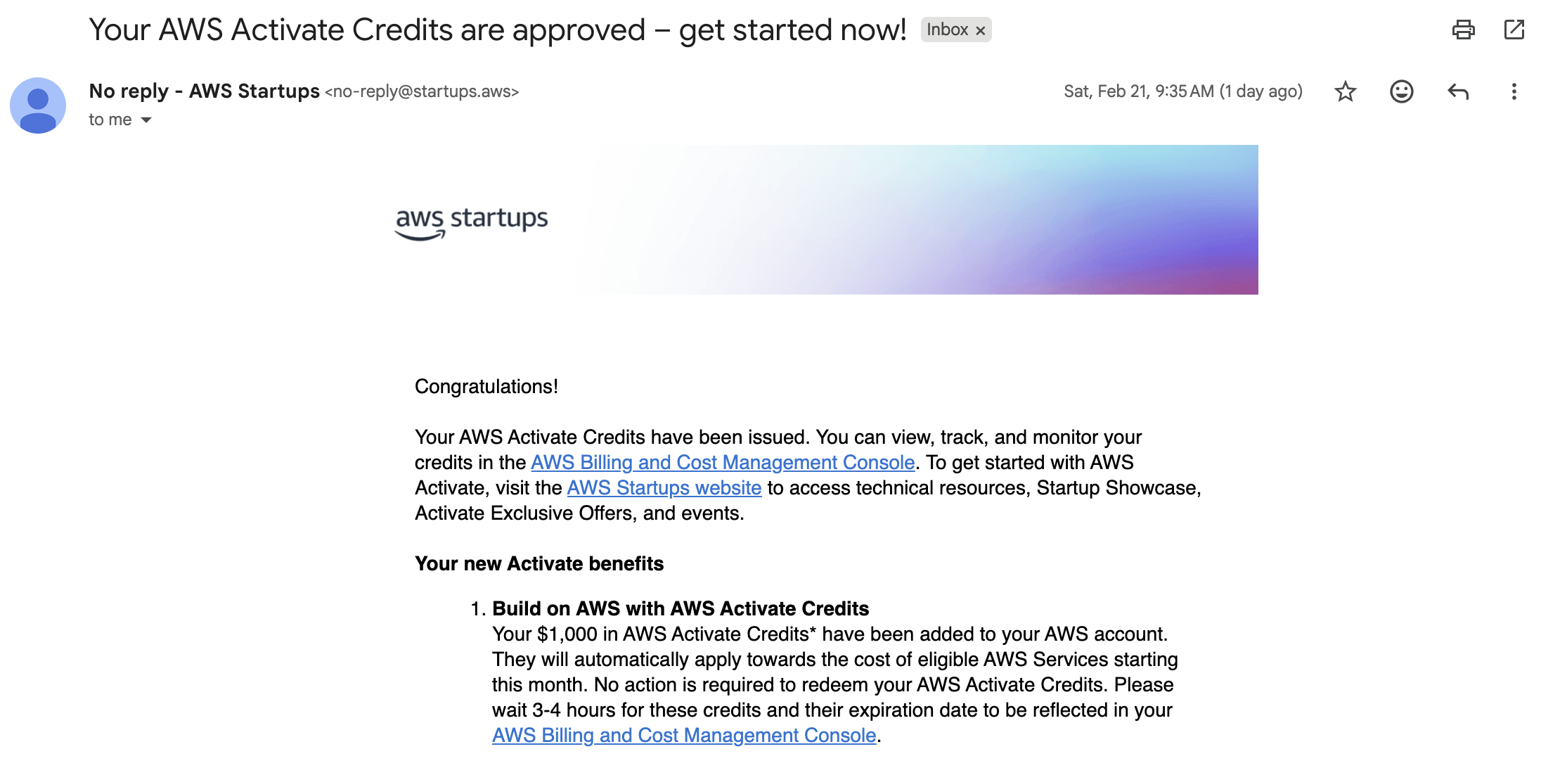 결론부터 말하면, 우리는 AWS Startup 창업자(Founders) 티어를 신청하였고 승인되어 1,000 달러를 받았다. 🥳🎉🎊