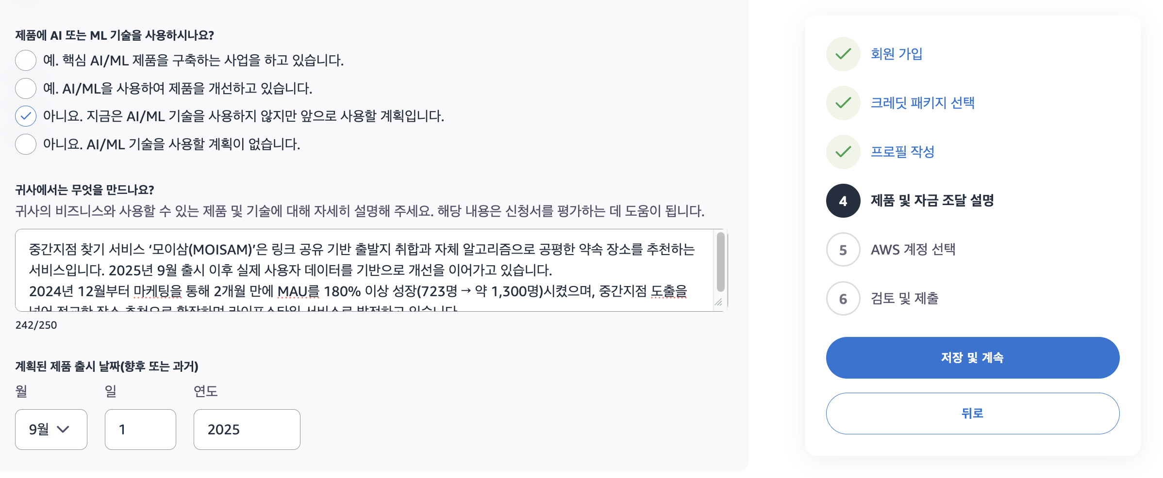 4️⃣ 제품 및 자금 조달 설명 작성