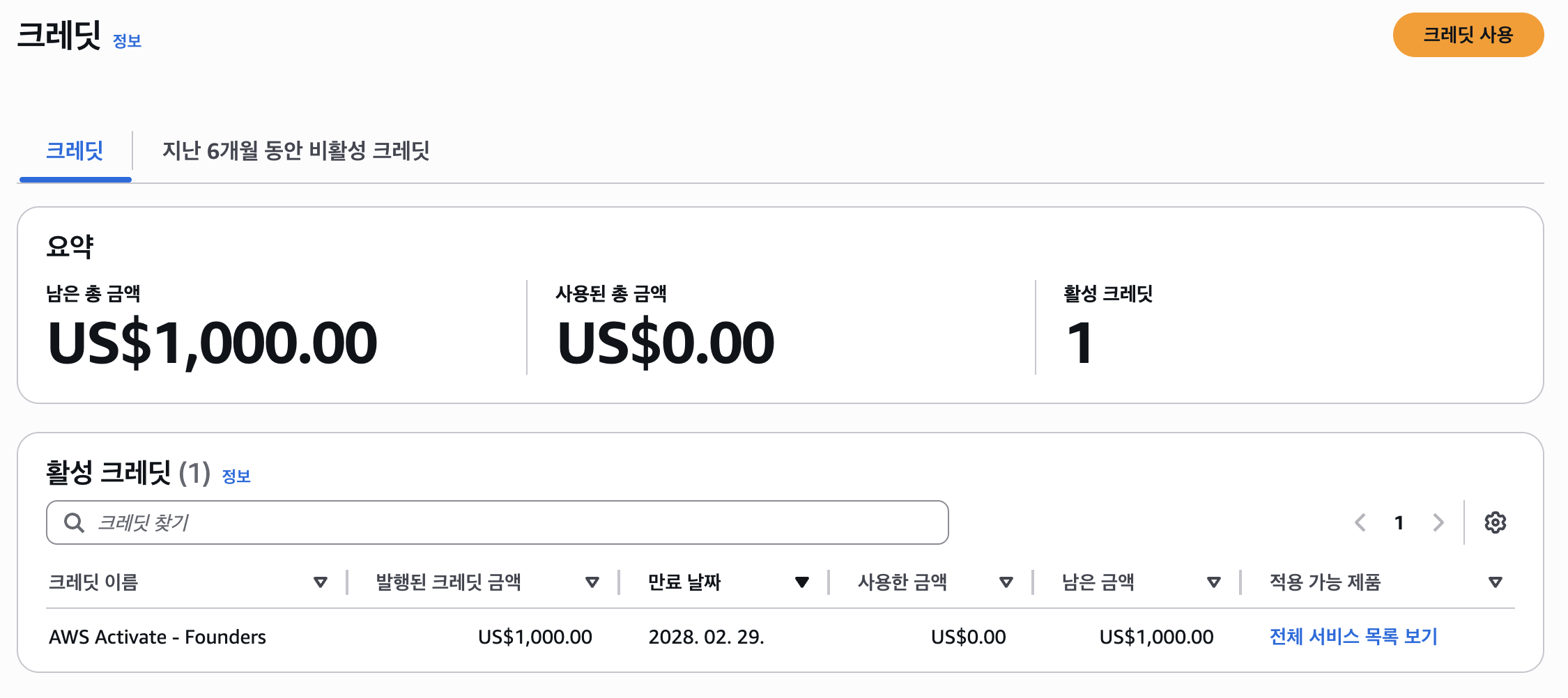 드디어 모이삼도 AWS 크레딧(1,000달러)을 사용할 수 있게 되었다!