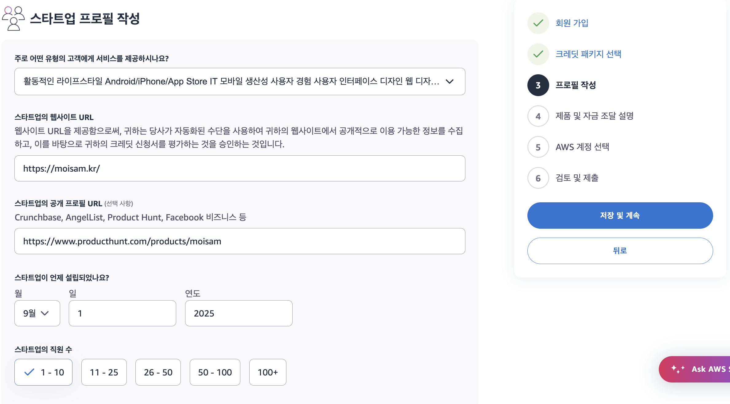 5️⃣ AWS 계정 연결 + 신청서 제출